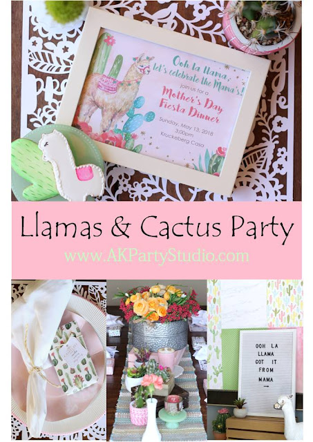 host a party with my own spin on such a darling theme. Last year we "Flamingled" for Mother's Day, this year I combined these cute themes into one fun party, for an Ooh la llama let's celebrate the Mamas, fiesta dinner. We served carne asada and fajita chicken with all the fixins, and on the side we had homemade refried beans, Mexican street corn and Spanish rice. I'm drooling now just thinking about it, I guarantee that no one left hungry!